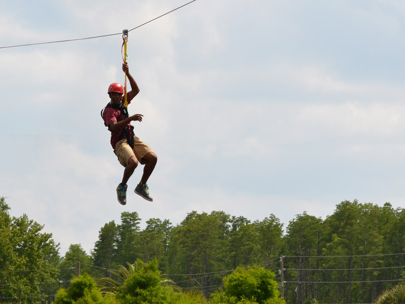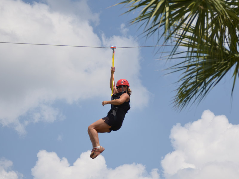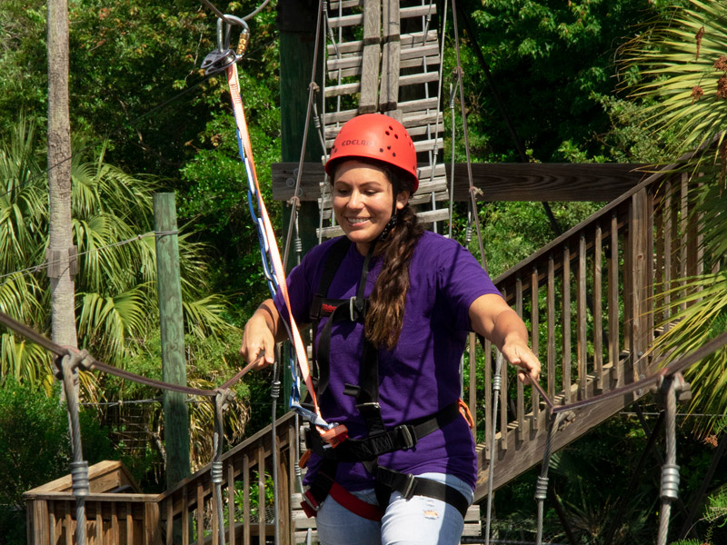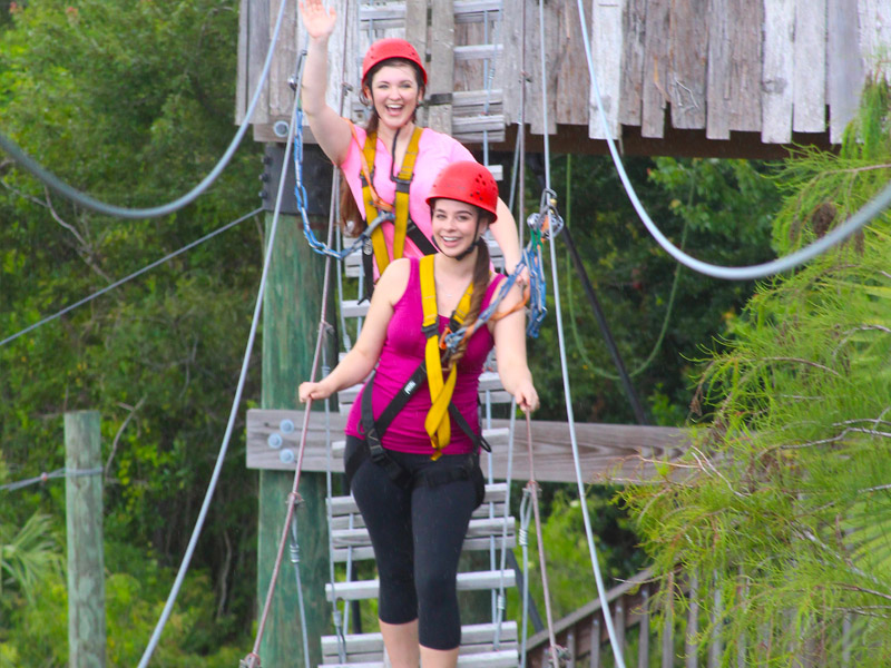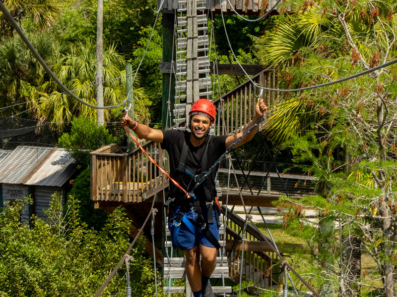 Guests ascend the 32-foot Croc Rock while hooked and secured into an auto belay safety system, then they will cross a 150ft swinging cable bridge, and finally, they’ll ride a 350ft zipline.